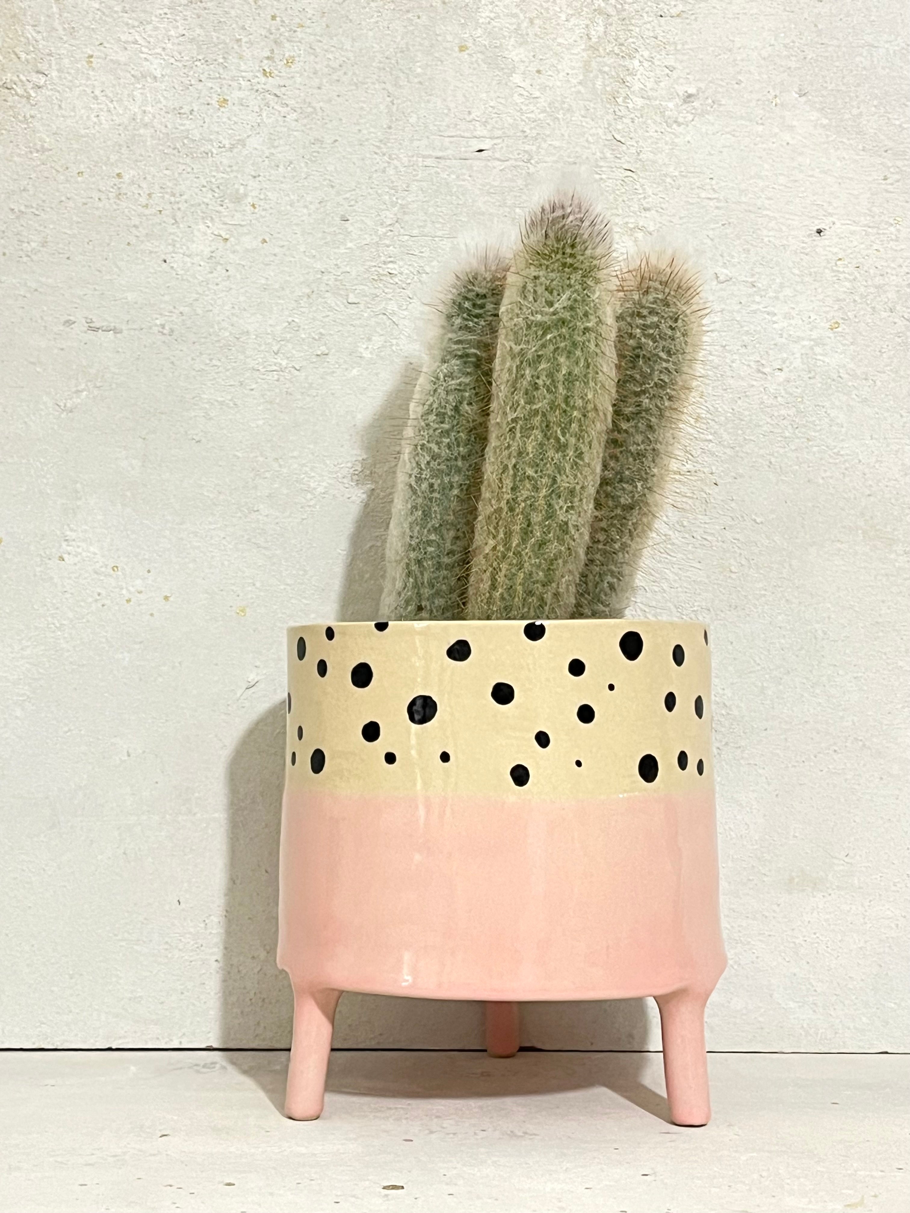 Plantenpot L met pootjes, roze met stipjes, /14cm